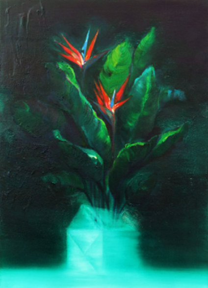 """집은 고정되지 않은 자아의 임시적 형상이며, 그 위에 피어난 꽃은 불완전한 조건 속에서도 피어나는 이상, 혹은 자유에 대한 상상입니다. 극락조는 마치 날아오르기 직전의 새처럼 보이기도 하며, 내면의 욕망이 외부 세계를 향해 드러나는 순간을 상징합니다. 극락조는 단지 아름답기만 한 식물이 아닙니다.척박한 환경에서도 우아한 형태를 유지하며 자라나는 식물로 알려져 있습니다. 비록 종이집은 아직 정착하지 않았지만, 그 안에서도 극락조는 피어납니다. 이는 불완전한 상태에서도 자신의 방식으로 피어나고자 하는 생의 의지를 보여줍니다."""