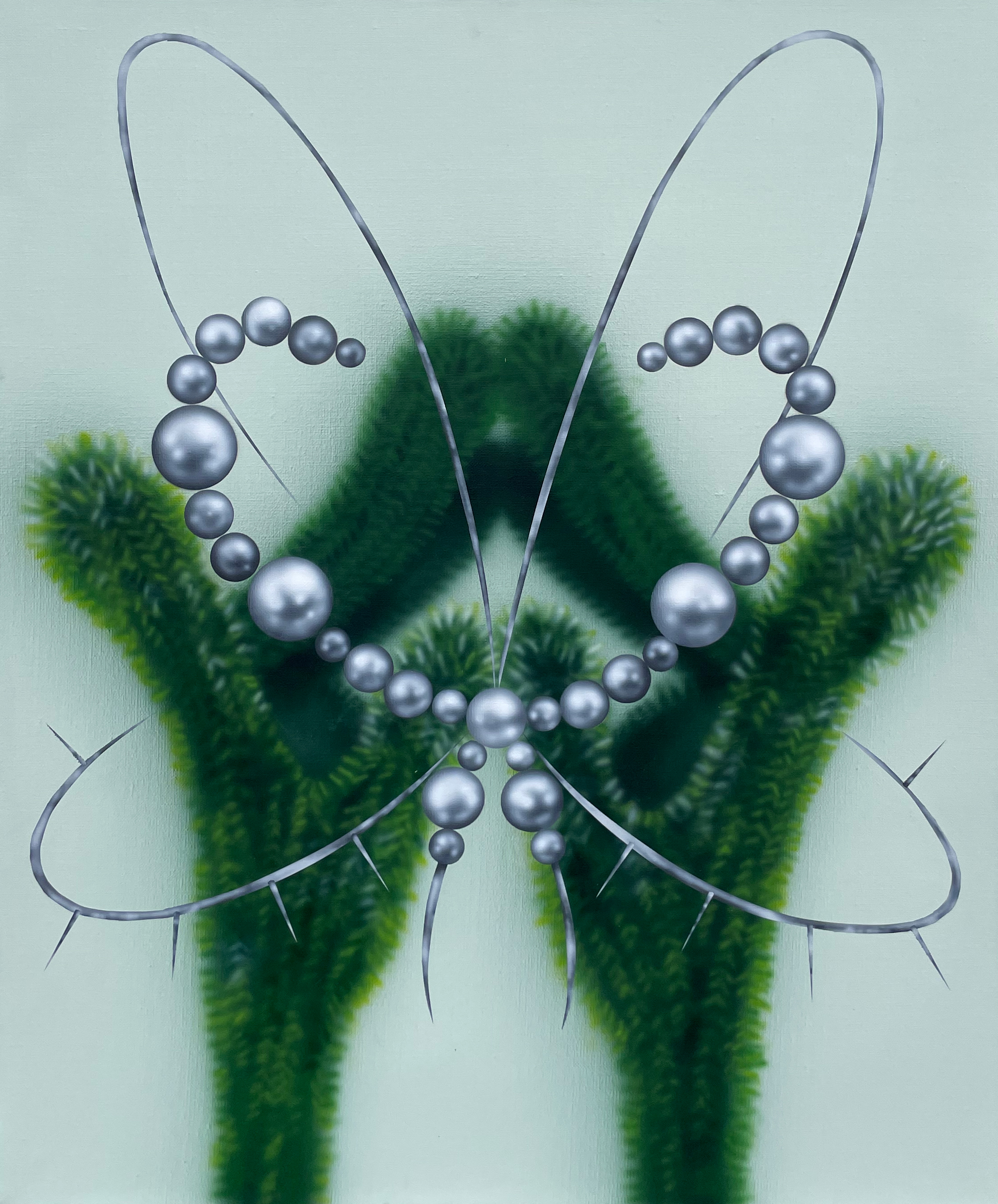 "이 작품은 인간이 지닌 과시와 욕망의 심리를 드러낸다. 화려하게 확장된 손의 이미지는 타인에게 보여지고자 하는 욕망과 존재의 과장된 표상을 상징하며, 선인장의 형상은 욕망 속에 내재된 긴장과 방어적 본능을 동시에 암시한다."