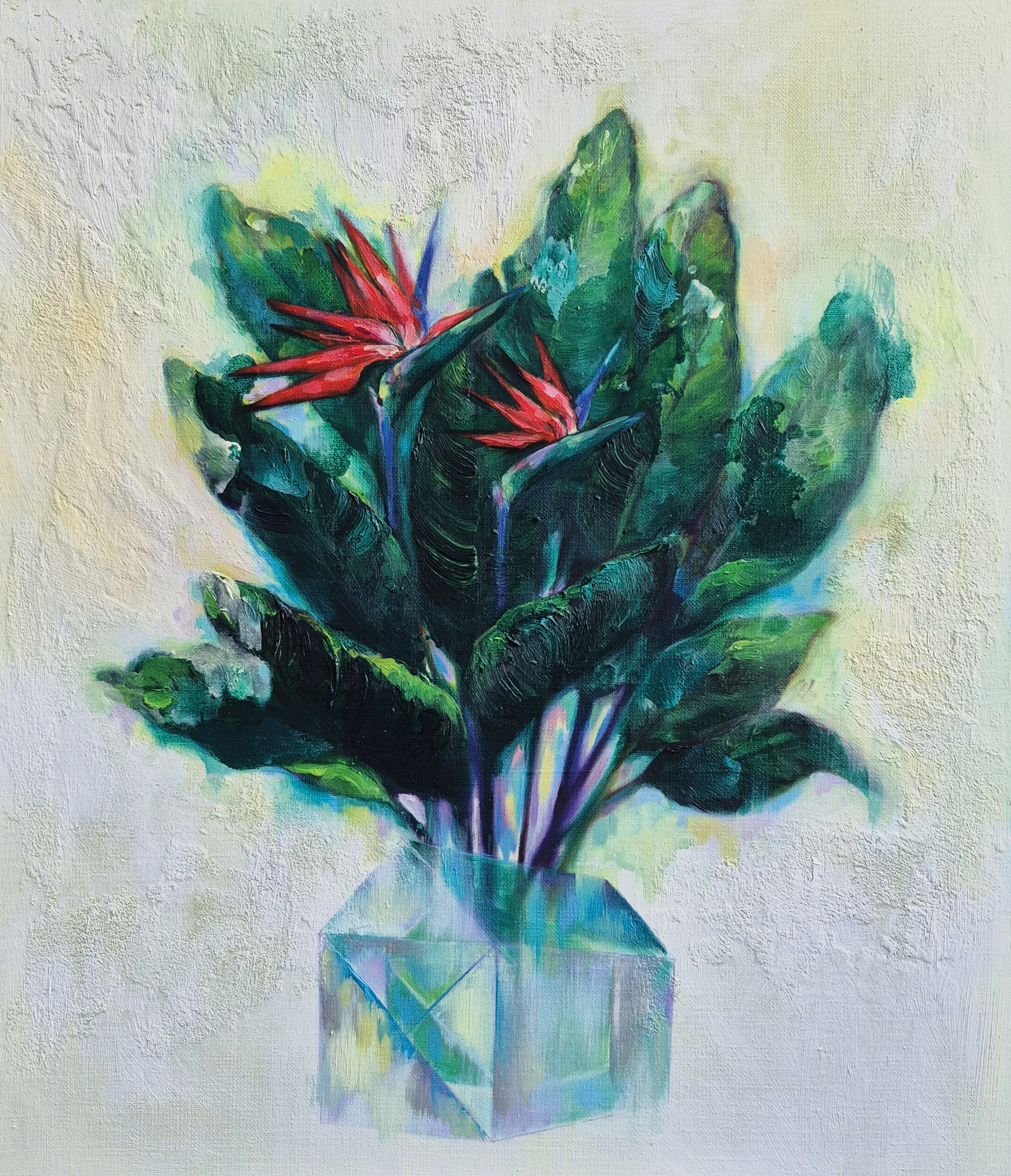 극락조는 마치 날아오르기 직전의 새처럼 보이기도 하며, 내면의 욕망이 외부 세계를 향해 드러나는 순간을 상징합니다.