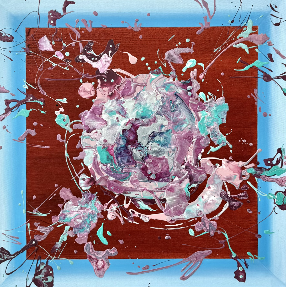 "작가는 불교적 개념인 ‘현존’을 통해 자아가 고정된 실체가 아니라 순간의 감각 속에서 드러난다는 깨달음을 얻었다. 푸어링 기법으로 만들어진 화면은 그 순간의 감각과 즉흥적인 몸의 움직임이 기록된 장이 된다. 작품은 살아 있는 흐름과 에너지를 통해 작가가 경험한 현존의 생명력을 전달한다"
