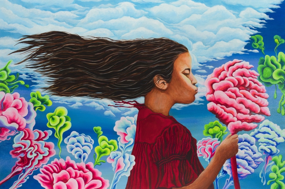 "넓은 들판에 한 소녀는 솜사탕 같은, 민들레 같은 뭔가를 불며 봄을 만끽하고 있는 듯 하지만... 사실은 손에 잡히지 않는 바람을 공기를 손에 쥐려는 것이다. 눈에 보이지 않지만 크고 강한 것. 이를테면 희망이나 행복, 바램 같은 것들 말이다. 우리는 모두 일상 속에서 그런 것들을 바라보며 산다."