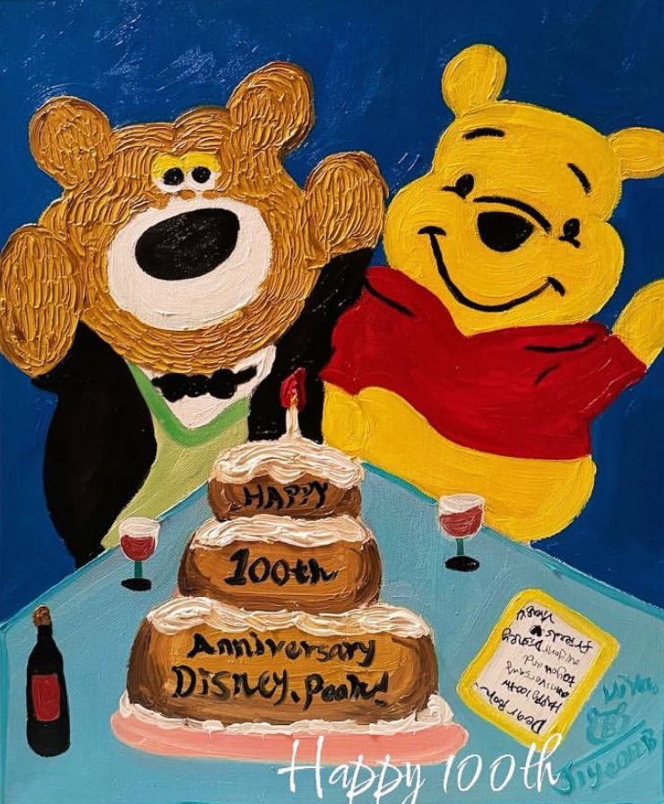 디즈니 100주년을 맞아 푸와 VIvaB 친구들이 만난 모습. 축하하는 비바비의 모습이 담긴 작품이다.